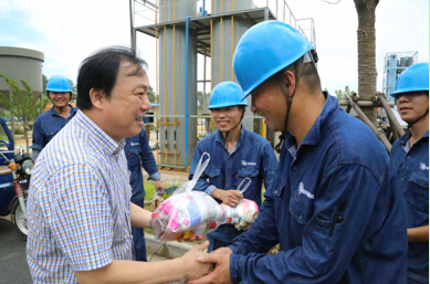 7月23日,集團(tuán)黨委副書記高小林到公司中試現(xiàn)場及泥處理車間慰問一線職工,送上毛巾、消暑飲料等防暑用品。